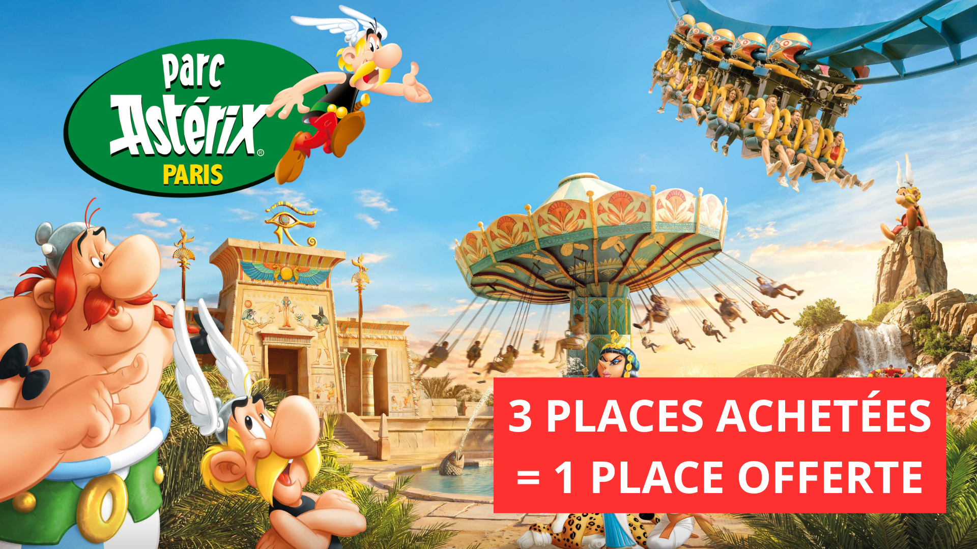 3 PLACES ACHETEES = 1 PLACE OFFERTE avec le code ASTERIX26 (bien penser à mettre 4 articles dans le panier)